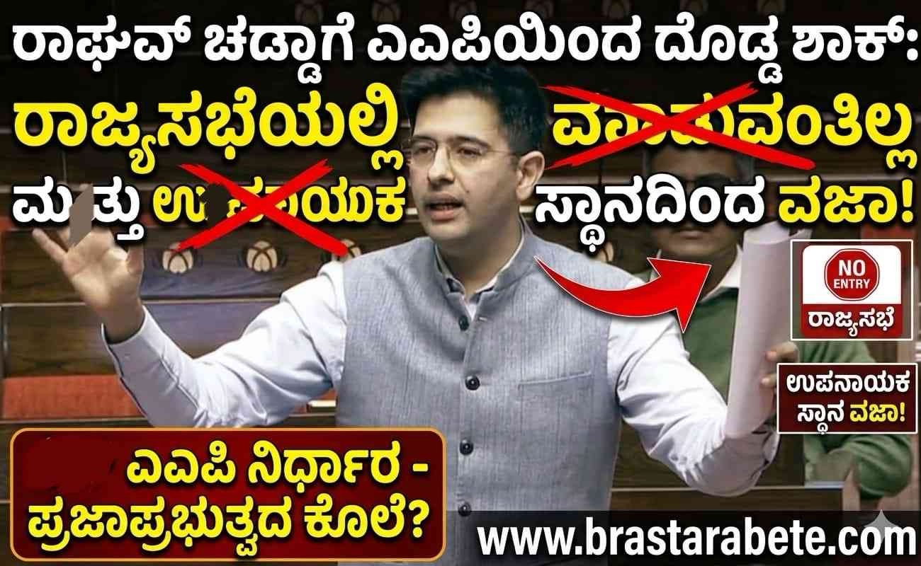 ಆಮ್ ಆದ್ಮಿ ಪಕ್ಷ (AAP) ತನ್ನ ರಾಜ್ಯಸಭಾ ಸಂಸದ Raghav Chadha ಅವರಿಗೆ ದೊಡ್ಡ ಹಿನ್ನಡೆ ನೀಡಿದ್ದು, ಅವರನ್ನು ರಾಜ್ಯಸಭಾ ಉಪನಾಯಕ ಸ್ಥಾನದಿಂದ ತೆಗೆಯಲಾಗಿದೆ. ಜೊತೆಗೆ, ರಾಜ್ಯಸಭೆಯಲ್ಲಿ ಮಾತನಾಡುವ ಅವರ ಅವಕಾಶಗಳನ್ನೂ ಮಿತಿಗೊಳಿಸುವಂತೆ ಪಕ್ಷವು ಕ್ರಮ ಕೈಗೊಂಡಿದೆ.