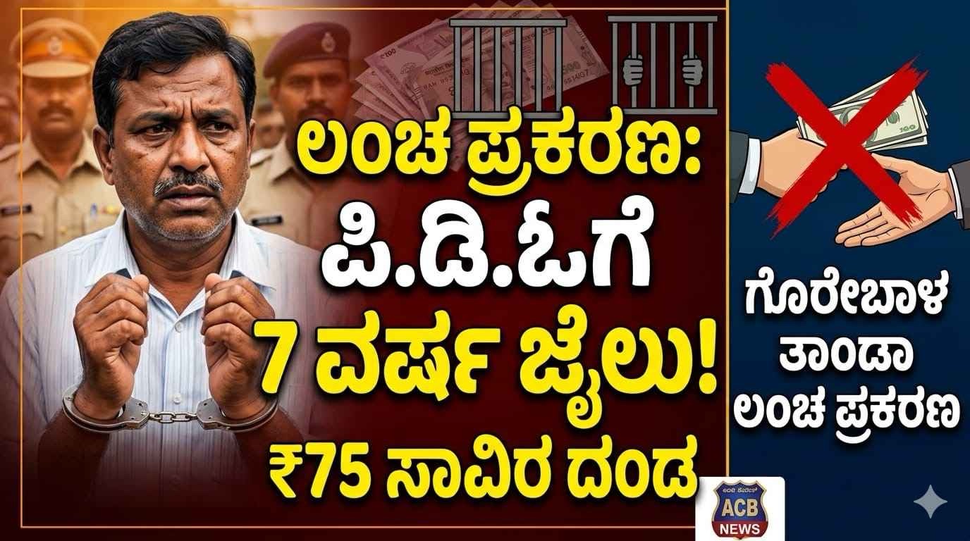 ರಾಯಚೂರು ಜಿಲ್ಲೆ ಲಿಂಗಸಗೂರು ತಾಲೂಕಿನ ಗೊರೇಬಾಳ ತಾಂಡಾದಲ್ಲಿ ನಡೆದ ಲಂಚ ಪ್ರಕರಣಕ್ಕೆ ಸಂಬಂಧಿಸಿದಂತೆ ಗ್ರಾಮ ಪಂಚಾಯಿತಿ ಪಿ.ಡಿ.ಓ ಮಹ್ಮದ ಖಾಜಾಗೆ ನ್ಯಾಯಾಲಯವು ಕಠಿಣ ಶಿಕ್ಷೆ ವಿಧಿಸಿದೆ.