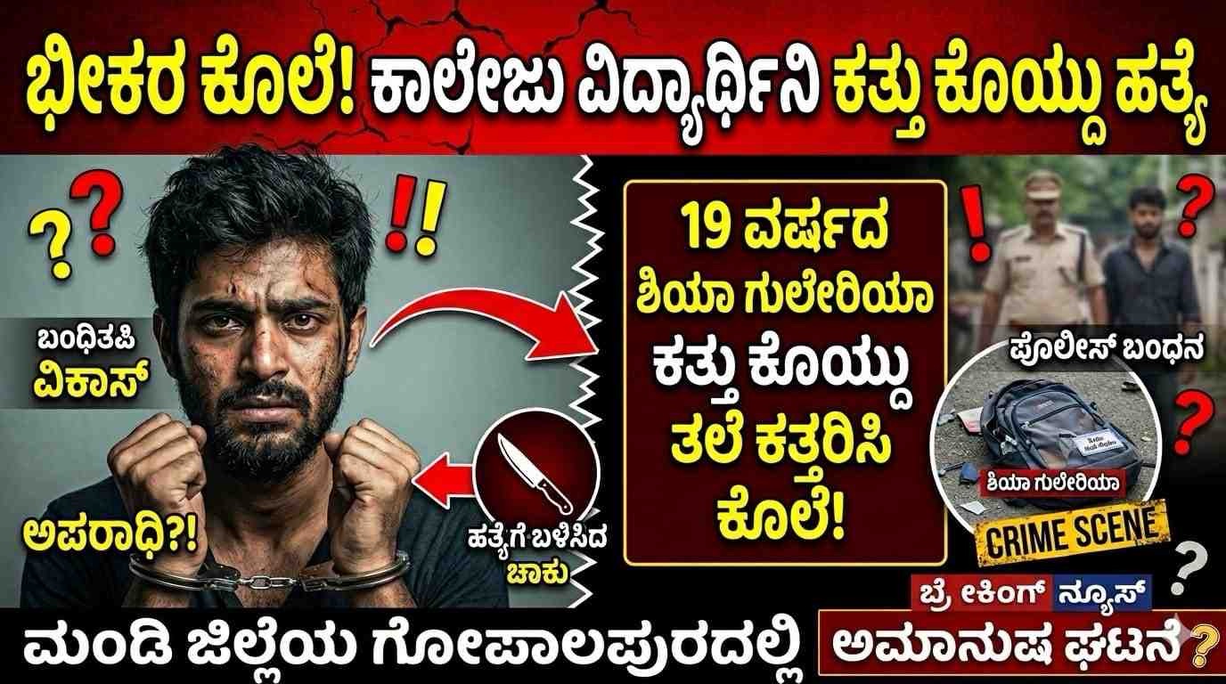 ಹಿಮಾಚಲ ಪ್ರದೇಶದ Mandi districtನಲ್ಲಿ ಸೋಮವಾರ ಬೆಳಗ್ಗೆ ಭೀಕರ ಹತ್ಯೆ ಪ್ರಕರಣೊಂದು ಬೆಳಕಿಗೆ ಬಂದಿದೆ. ಕಾಲೇಜಿಗೆ ತೆರಳುತ್ತಿದ್ದ 19 ವರ್ಷದ ವಿದ್ಯಾರ್ಥಿನಿಯನ್ನು ಕ್ರೂರವಾಗಿ ಹತ್ಯೆಗೈಯಲಾಗಿದೆ.