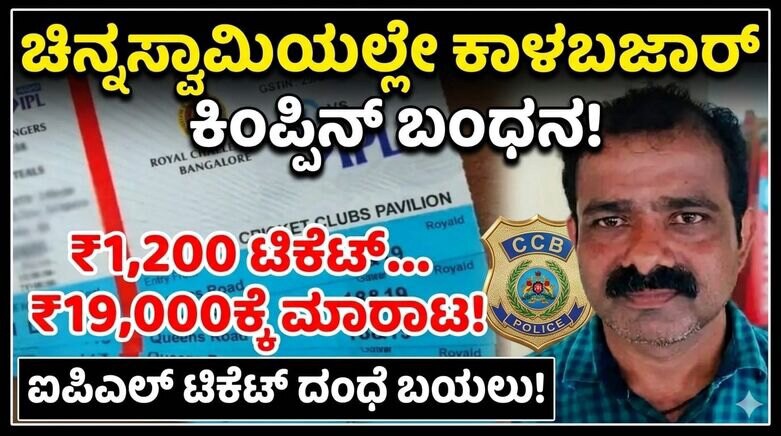ಬೆಂಗಳೂರು: ಐಪಿಎಲ್ ಹುಚ್ಚನ್ನು ದುರುಪಯೋಗಪಡಿಸಿಕೊಂಡು ಅಭಿಮಾನಿಗಳಿಂದ ಲಕ್ಷಾಂತರ ಹಣ ದೋಚುತ್ತಿದ್ದ ದೊಡ್ಡ ಟಿಕೆಟ್ ಕಾಳಬಜಾರ್ ಜಾಲವೊಂದನ್ನು ಸಿಸಿಬಿ ಪೊಲೀಸರು ಭೇದಿಸಿದ್ದಾರೆ. ಚಿನ್ನಸ್ವಾಮಿ ಕ್ರೀಡಾಂಗಣದ ಒಳಗೇ ಕೆಲಸ ಮಾಡುತ್ತಿದ್ದ ಕ್ಯಾಂಟೀನ್ ನೌಕರನೊಬ್ಬನ ಬಂಧನದೊಂದಿಗೆ ಈ ದಂಧೆಯ ಅಸಲಿ ಮುಖ ಹೊರಬಿದ್ದಿದೆ.