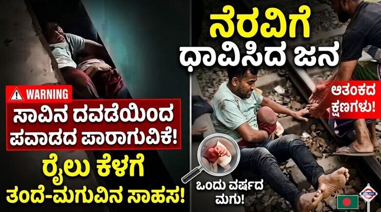 ಬಾಂಗ್ಲಾದೇಶದ ಕಿಶೋರ್ಗಂಜ್ ಜಿಲ್ಲೆಯ ಭೈರಬ್ ರೈಲು ನಿಲ್ದಾಣದಲ್ಲಿ ನಡೆದ ಹೃದಯ ಕಲುಕುವ ಘಟನೆ ಒಂದು ಸಾಮಾಜಿಕ ಜಾಲತಾಣಗಳಲ್ಲಿ ಭಾರೀ ಚರ್ಚೆಗೆ ಗ್ರಾಸವಾಗಿದೆ. ಚಲಿಸುತ್ತಿದ್ದ ರೈಲಿಗೆ ಹತ್ತಲು ಪ್ರಯತ್ನಿಸಿದ ವೇಳೆ ತಂದೆ ಮತ್ತು ಅವರ ಒಂದು ವರ್ಷದ ಮಗು ಪ್ಲಾಟ್ಫಾರ್ಮ್ ಮತ್ತು ರೈಲು ಹಳಿ ನಡುವಿನ ಅಂತರಕ್ಕೆ ಬಿದ್ದು, ಜೀವಪಾಯದ ಪರಿಸ್ಥಿತಿಯನ್ನು ಎದುರಿಸಿದರು.