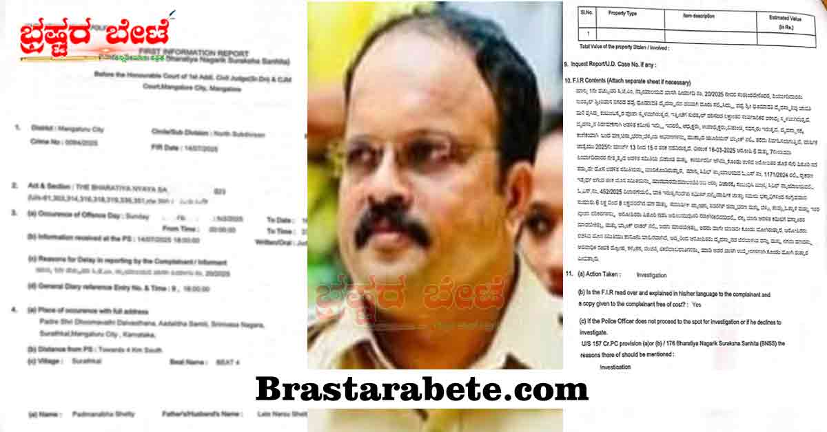 ಮಂಗಳೂರು: ಲೋಕಾಯುಕ್ತ ವಿಭಾಗದ ಡಿವೈಎಸ್ಪಿ ಸ್ಥಾನದಲ್ಲಿರುವ ದಿನಕರ್ ಶೆಟ್ಟಿ ವಿರುದ್ಧ ಚಿನ್ನ ಹಾಗೂ ನಗದು ಕಳ್ಳತನದ ಆರೋಪ ಕೇಳಿಬಂದಿದ್ದು, ಸುರತ್ಕಲ್ ಪೊಲೀಸ್ ಠಾಣೆಯಲ್ಲಿ ಅವರ ವಿರುದ್ಧ ಎಫ್ಐಆರ್ ದಾಖಲಾಗಿದೆ.