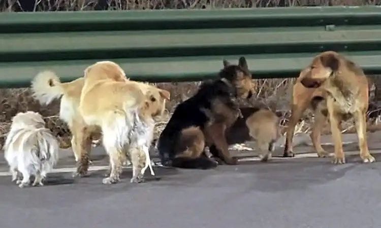 ಶ್ವಾನಗಳನ್ನು ಕದ್ದು ಸಾಗಿಸುತ್ತಿದ್ದ ವಾಹನದಿಂದ ತಪ್ಪಿಸಿಕೊಂಡ ಈ ನಾಯಿಗಳು, ಪರಸ್ಪರ ಬೆಂಬಲವಾಗಿ ಒಂದಾಗಿ ಸಾಗಿರುವ ದೃಶ್ಯ ಇದೀಗ ಸಾಮಾಜಿಕ ಜಾಲತಾಣಗಳಲ್ಲಿ ವೈರಲ್ ಆಗಿದೆ. ರಸ್ತೆ ಬದಿಯಲ್ಲಿ ಶಿಸ್ತಿನಿಂದ, ಒಗ್ಗಟ್ಟಿನಿಂದ ಸಾಗುತ್ತಿರುವ ಈ ಗುಂಪನ್ನು ಸ್ಥಳೀಯರೊಬ್ಬರು ವಿಡಿಯೋದಲ್ಲಿ ಸೆರೆಹಿಡಿದಿದ್ದಾರೆ.