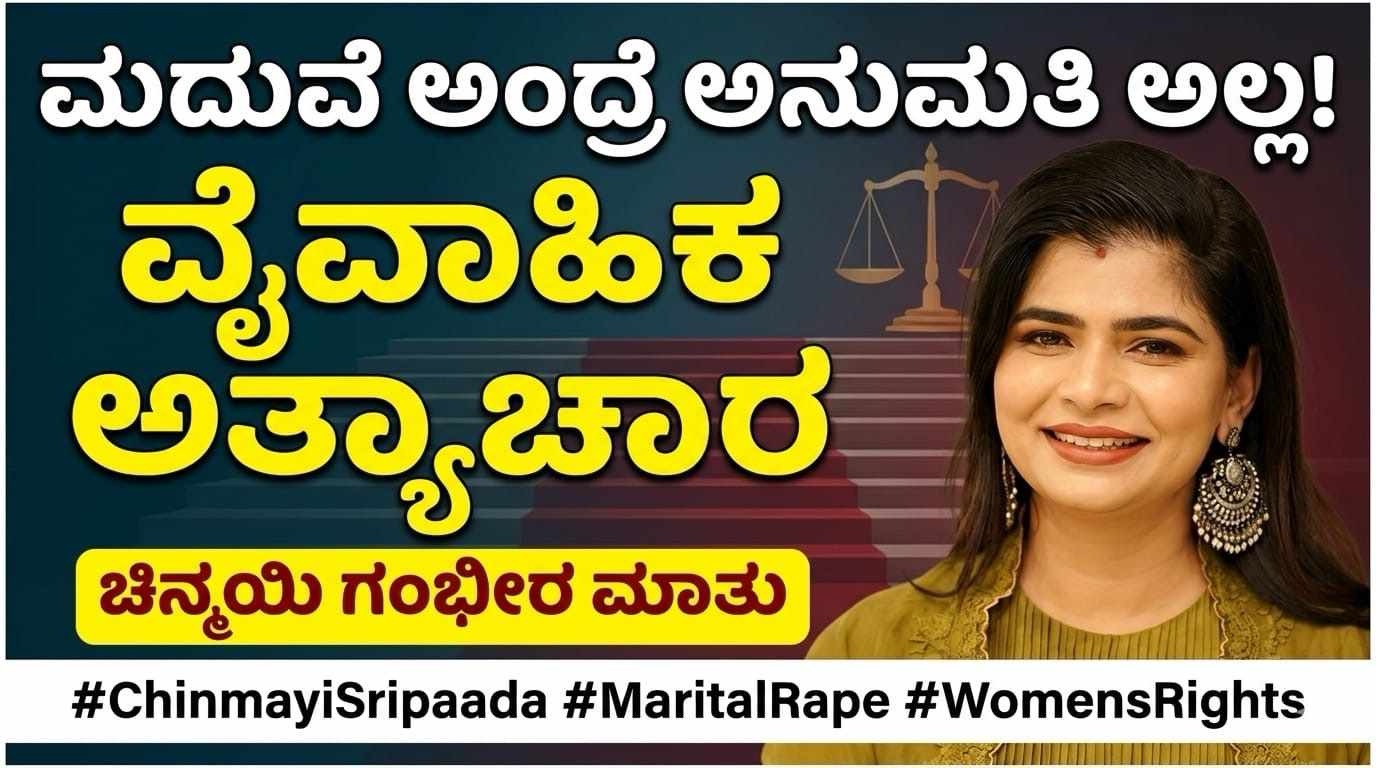 ಕೌಟುಂಬಿಕ ಅಥವಾ ವೈವಾಹಿಕ ಅತ್ಯಾಚಾರದ ವಿಚಾರ ಮತ್ತೆ ಚರ್ಚೆಗೆ ಬಂದಿರುವ ಈ ಸಂದರ್ಭದಲ್ಲಿ ಜನಪ್ರಿಯ ಗಾಯಕಿ Chinmayi Sripaada ತೀವ್ರವಾಗಿ ಪ್ರತಿಕ್ರಿಯಿಸಿದ್ದಾರೆ. ಮಹಿಳೆಯರ ಹಕ್ಕುಗಳ ಪರ ಸದಾ ಧ್ವನಿ ಎತ್ತುವ ಅವರು, ತಮ್ಮ ಹೇಳಿಕೆಯಿಂದ ಸೋಷಿಯಲ್ ಮೀಡಿಯಾದಲ್ಲಿ ಮತ್ತೆ ಗಮನ ಸೆಳೆದಿದ್ದಾರೆ.