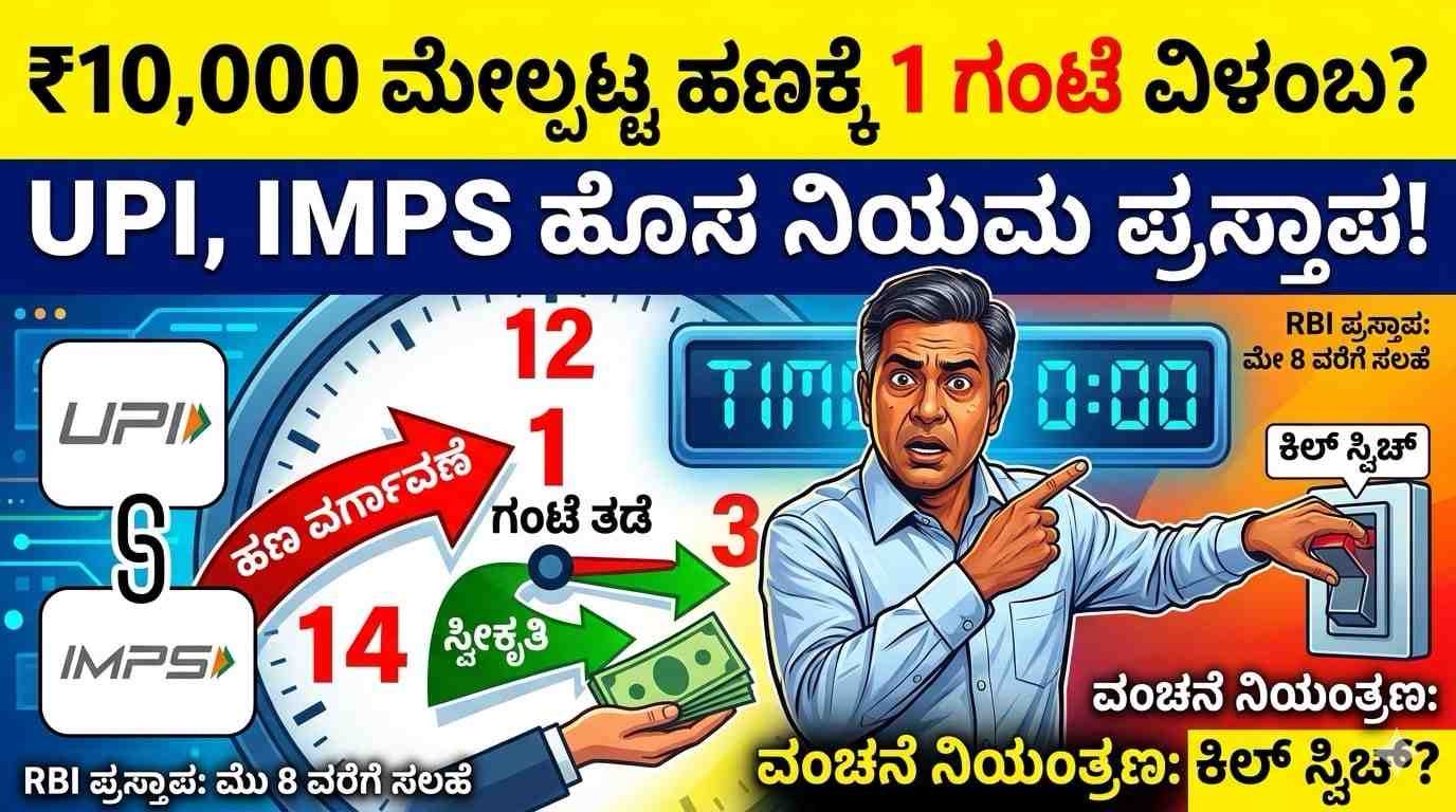 ಡಿಜಿಟಲ್ ವಹಿವಾಟುಗಳಲ್ಲಿ ಹೆಚ್ಚುತ್ತಿರುವ ವಂಚನೆ ಪ್ರಕರಣಗಳನ್ನು ನಿಯಂತ್ರಿಸಲು ಭಾರತೀಯ ರಿಸರ್ವ್ ಬ್ಯಾಂಕ್ (RBI) ಹೊಸ ಭದ್ರತಾ ಕ್ರಮಗಳನ್ನು ಪರಿಗಣಿಸುತ್ತಿದೆ. ಈ ಪ್ರಸ್ತಾವನೆಯಡಿಯಲ್ಲಿ, UPI ಅಥವಾ IMPS ಮೂಲಕ ₹10,000 ಕ್ಕಿಂತ ಹೆಚ್ಚಿನ ಮೊತ್ತವನ್ನು ವರ್ಗಾಯಿಸಿದಲ್ಲಿ, ಹಣ ತಕ್ಷಣವೇ ಸ್ವೀಕರಿಸುವವರ ಖಾತೆಗೆ ಜಮೆಯಾಗದೇ, ಒಂದು ಗಂಟೆಯ “ಕೂಲಿಂಗ್ ಅವಧಿ” ವಿಧಿಸುವ ಸಾಧ್ಯತೆ ಇದೆ.