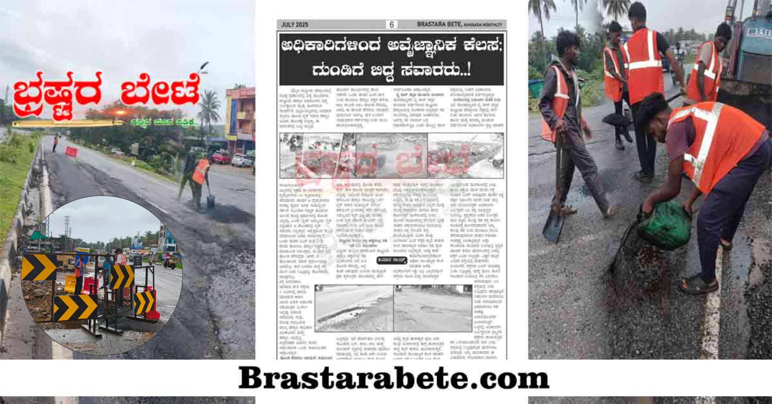 ಭ್ರಷ್ಟರ ಬೇಟೆ ಪತ್ರಿಕೆ ಸುದ್ದಿ ಇಂಪ್ಯಾಕ್ಟ್: ಭಟ್ಕಳ ರಾಷ್ಟ್ರೀಯ ಹೆದ್ದಾರಿಯಲ್ಲಿ ದೊಡ್ಡ ಪ್ರಮಾಣದಲ್ಲಿ ಹೊಂಡಗಳು ಬಿದ್ದು ಅಧಿಕಾರಿಗಳ ದಿವ್ಯ ನಿರ್ಲಕ್ಷ್ಯದಿಂದ ಮೃತ್ಯು ಕೂಪಗಳಾಗಿ ಪರಿವರ್ತನೆಯಾದ ಹೊಂಡಗಳ್ಳನ್ನು ಮುಚ್ಚಿದ ಅಧಿಕಾರಿಗಳು