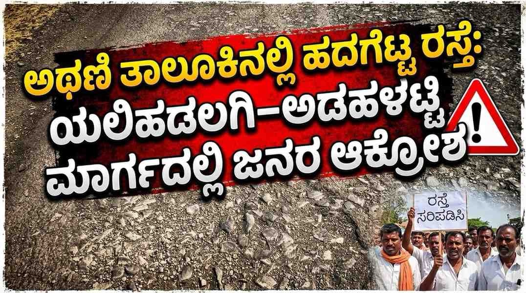 ಬೆಳಗಾವಿ ಜಿಲ್ಲೆಯ ಅಥಣಿ ತಾಲೂಕಿನ ಯಲಿಹಡಲಗಿ–ಅಡಹಳಟ್ಟಿ ಸಂಪರ್ಕ ರಸ್ತೆ ಸಂಪೂರ್ಣ ಹದಗೆಟ್ಟು, ತೆಗ್ಗು-ಗುಂಡಿಗಳಿಂದ ತುಂಬಿಕೊಂಡಿದೆ. ರಸ್ತೆಯ ದುಸ್ಥಿತಿಯಿಂದ ಬೈಕ್ ಸವಾರರು ಮತ್ತು ವಾಹನ ಚಾಲಕರು ಸಂಚರಿಸಲು ಭಾರೀ ಕಷ್ಟ ಅನುಭವಿಸುತ್ತಿದ್ದಾರೆ.