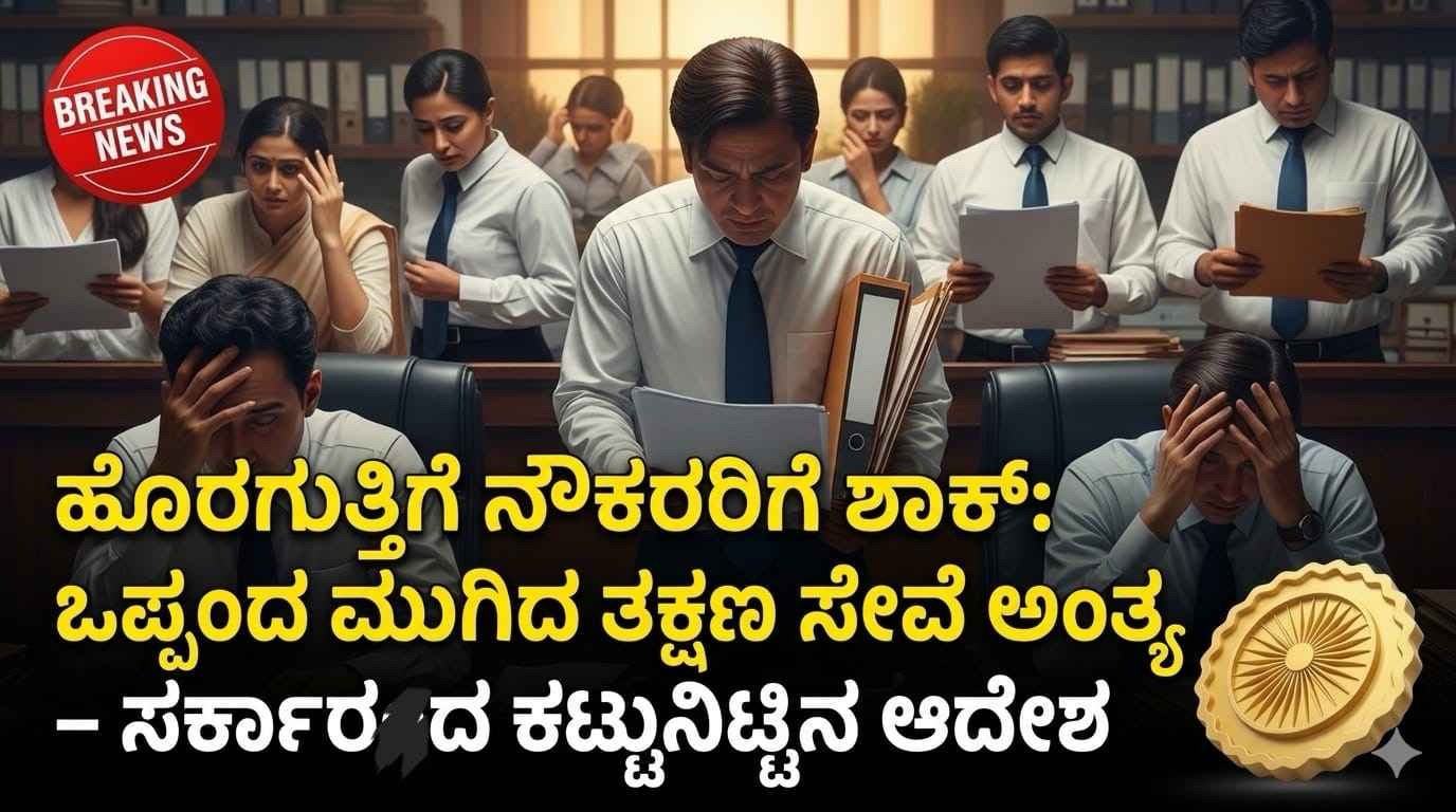 ರಾಜ್ಯದ ವಿವಿಧ ಸರ್ಕಾರಿ ಇಲಾಖೆಗಳು ಹಾಗೂ ನಿಗಮ-ಮಂಡಳಿಗಳಲ್ಲಿ ಹೊರಗುತ್ತಿಗೆ ಆಧಾರದ ಮೇಲೆ ಕಾರ್ಯನಿರ್ವಹಿಸುತ್ತಿರುವ ನೌಕರರಿಗೆ ರಾಜ್ಯ ಸರ್ಕಾರ ಮಹತ್ವದ ಹಾಗೂ ಕಟ್ಟುನಿಟ್ಟಿನ ಆದೇಶ ಹೊರಡಿಸಿದೆ. ಟೆಂಡರ್ ಅಥವಾ ಒಪ್ಪಂದದ ಅವಧಿ ಮುಗಿದ ಕೂಡಲೇ, ಯಾವುದೇ ಮುನ್ಸೂಚನೆ ನೀಡದೆ ಸಂಬಂಧಿತ ನೌಕರರನ್ನು ಕೆಲಸದಿಂದ ಬಿಡುಗಡೆಗೊಳಿಸಬೇಕೆಂದು ಸೂಚಿಸಲಾಗಿದೆ.