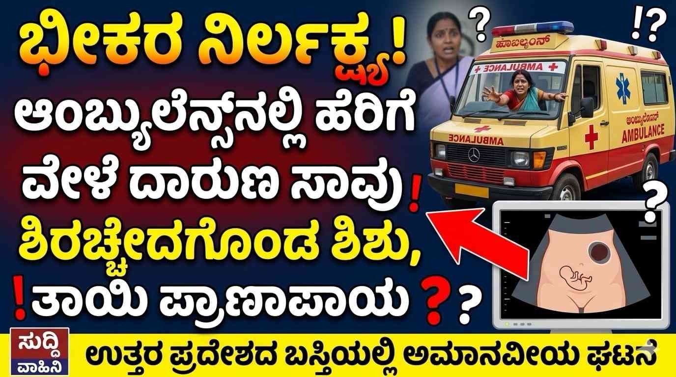 ವೈದ್ಯಕೀಯ ಕ್ಷೇತ್ರವೇ ತಲೆತಗ್ಗಿಸುವಂತಹ ಅಮಾನವೀಯ ಘಟನೆ ಉತ್ತರ ಪ್ರದೇಶದ ಬಸ್ತಿ ಜಿಲ್ಲೆಯಲ್ಲಿ ನಡೆದಿದೆ. ಆಂಬ್ಯುಲೆನ್ಸ್ ಸಿಬ್ಬಂದಿಯ ನಿರ್ಲಕ್ಷ್ಯ ಮತ್ತು ಅತಿಯಾದ ಆತ್ಮವಿಶ್ವಾಸದಿಂದ ಏಳು ತಿಂಗಳ ಗರ್ಭಿಣಿಯ ಶಿಶು ದಾರುಣವಾಗಿ ಮೃತಪಟ್ಟಿದ್ದು, ಮಗುವಿನ ತಲೆ ತಾಯಿಯ ಗರ್ಭದಲ್ಲೇ ಉಳಿದ ಭೀಕರ ಘಟನೆ ಬೆಳಕಿಗೆ ಬಂದಿದೆ.