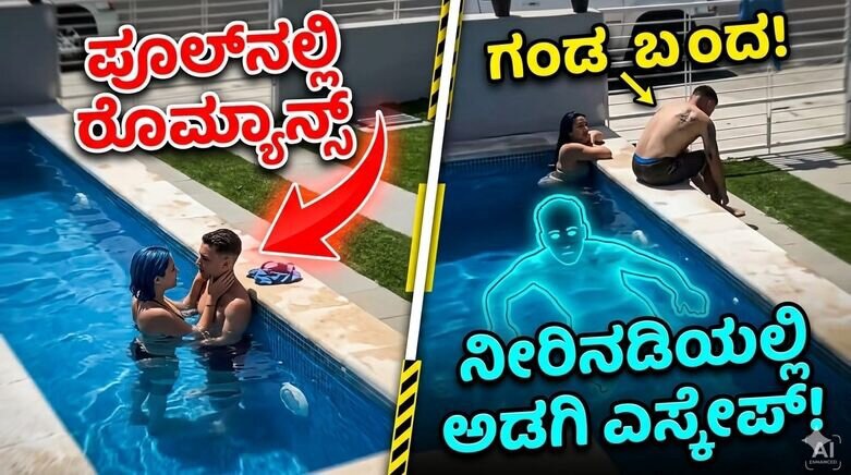 ವೈರಲ್ ವಿಡಿಯೋದಲ್ಲಿ ಮಹಿಳೆ ತನ್ನ ಗೆಳೆಯನೊಂದಿಗೆ ಪೂಲ್ನಲ್ಲಿ ಆಟವಾಡುತ್ತಿರುವುದು ಕಾಣುತ್ತದೆ. ಇದೇ ವೇಳೆ ಆಕೆಯ ಪತಿ ಮನೆಗೆ ಆಗಮಿಸುತ್ತಿದ್ದಂತೆ ಮಹಿಳೆ ಗಾಬರಿಗೊಂಡು, ಪರಿಸ್ಥಿತಿಯನ್ನು ನಿಭಾಯಿಸಲು ಯತ್ನಿಸುತ್ತಾಳೆ. ಆಕೆಯ ಸೂಚನೆ ಮೇರೆಗೆ ಬಾಯ್ಫ್ರೆಂಡ್ ನೀರಿನ ಅಡಿಯಲ್ಲಿ ಅಡಗಿಕೊಳ್ಳುತ್ತಾನೆ.